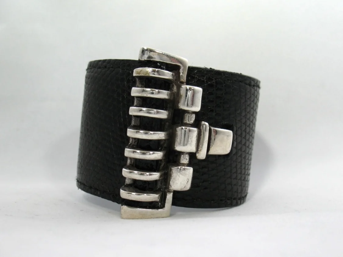 sterling silver on black lizard
